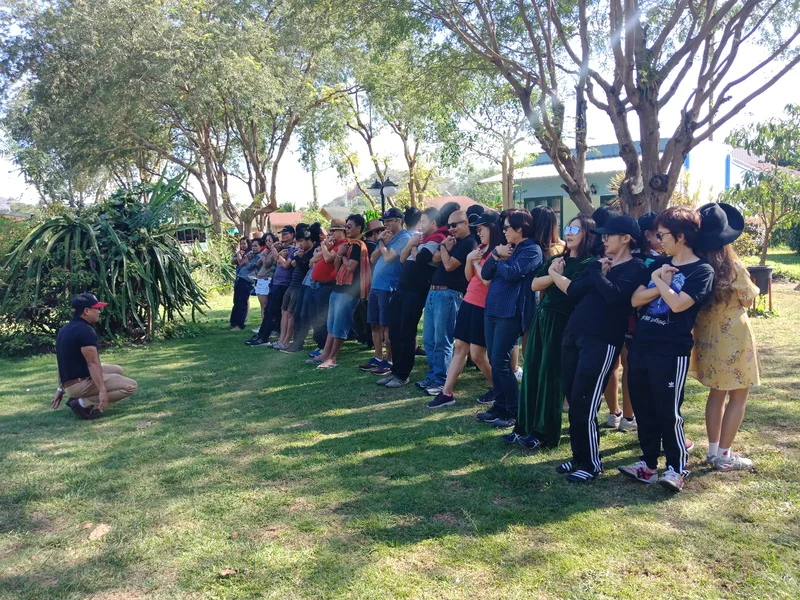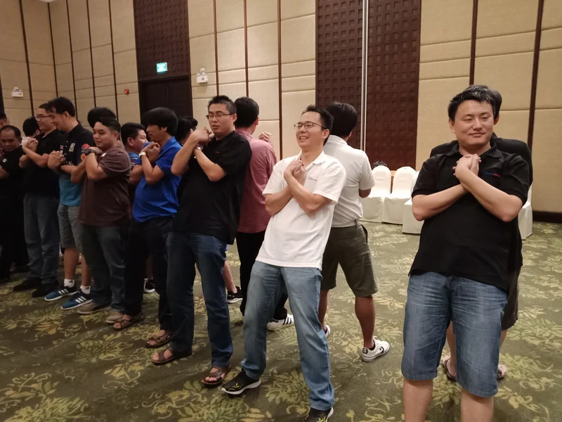 กิจกรรมนี้ ค่อนข้างยากที่จะยืนขึ้นพร้อมๆกัน แต่ก็เป็นไปได้ ท่านจะต้องหาทาง หรือวิธีใหม่ๆ ที่จะทำให้ทำงานที่ยากกว่าเดิมให้ได้ เพราะถ้าเราช้า เราจะเสียโอกาสในการพัฒนาองค์กรเราให้เราตามหลังบริษัทอื่น เราทั้งสองจะต้องช่วยกันดันให้อยู่ได้อย่างมั่นคงและเป็นหนึ่ง อีกนัยหนึ่ง คือคู่ใดคู่หนึ่งขึ้นได้ 100% และอีกคู่อื่นๆ ขึ้นไม่ได้พร้อมกัน ก็ถือว่าทั้งองค์กรไปไม่ได้